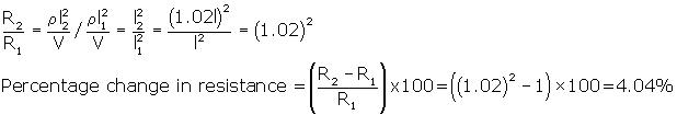 Q2. A conducting wire is stretched to increase its length by 2%. What is the percentage change in resistance?