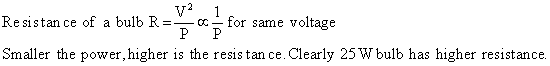 Q25. Out of two bulbs marked 25 W and 100 W, which has higher resistance?