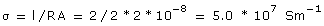 , A = 0.02 mm2 = 0.02 x 10-6 m2 = 2 x 10-8 m2, l = 2 m