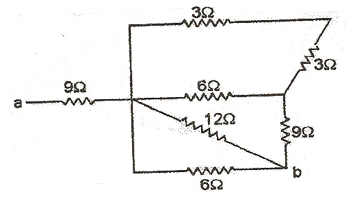 This 3 Ω resistance in series with 9 Ω this combination is in parallel to 12 Ω resistance.