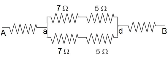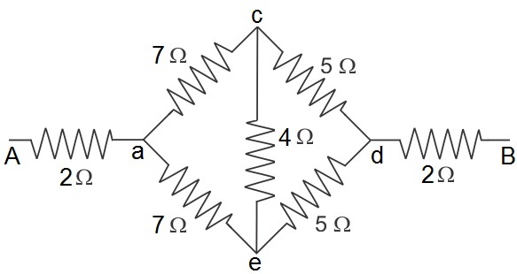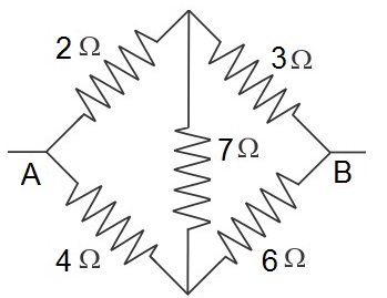 Q46. Determine the equivalent resistance between terminals A and B of network shown in the figure below:
