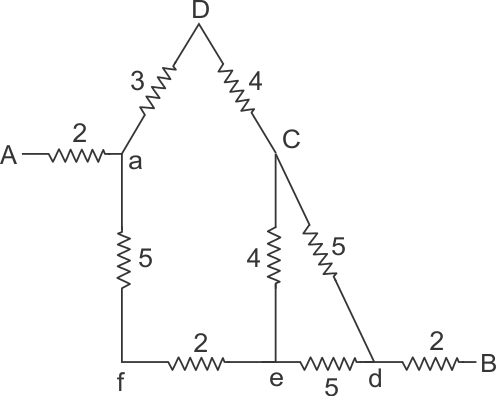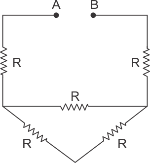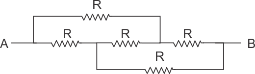 Q13. Five resistances are connected as shown in fig. The effective resistance between points A and B is