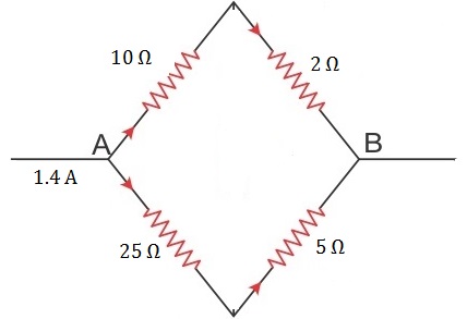 (ii) Also calculate the current through CD and ACB if a 10 V dc source is connected between points A and B and the value of R 2 Ω.